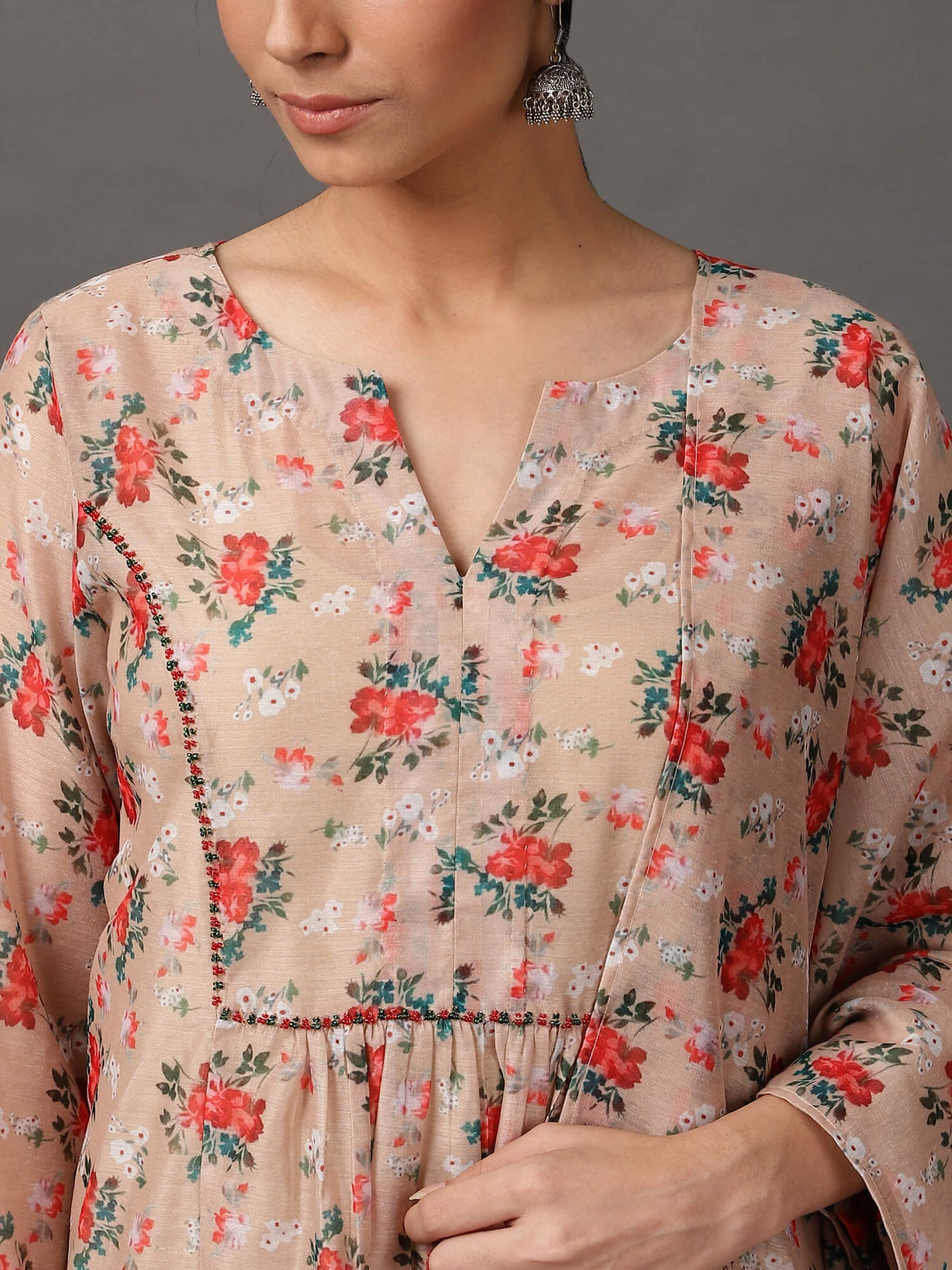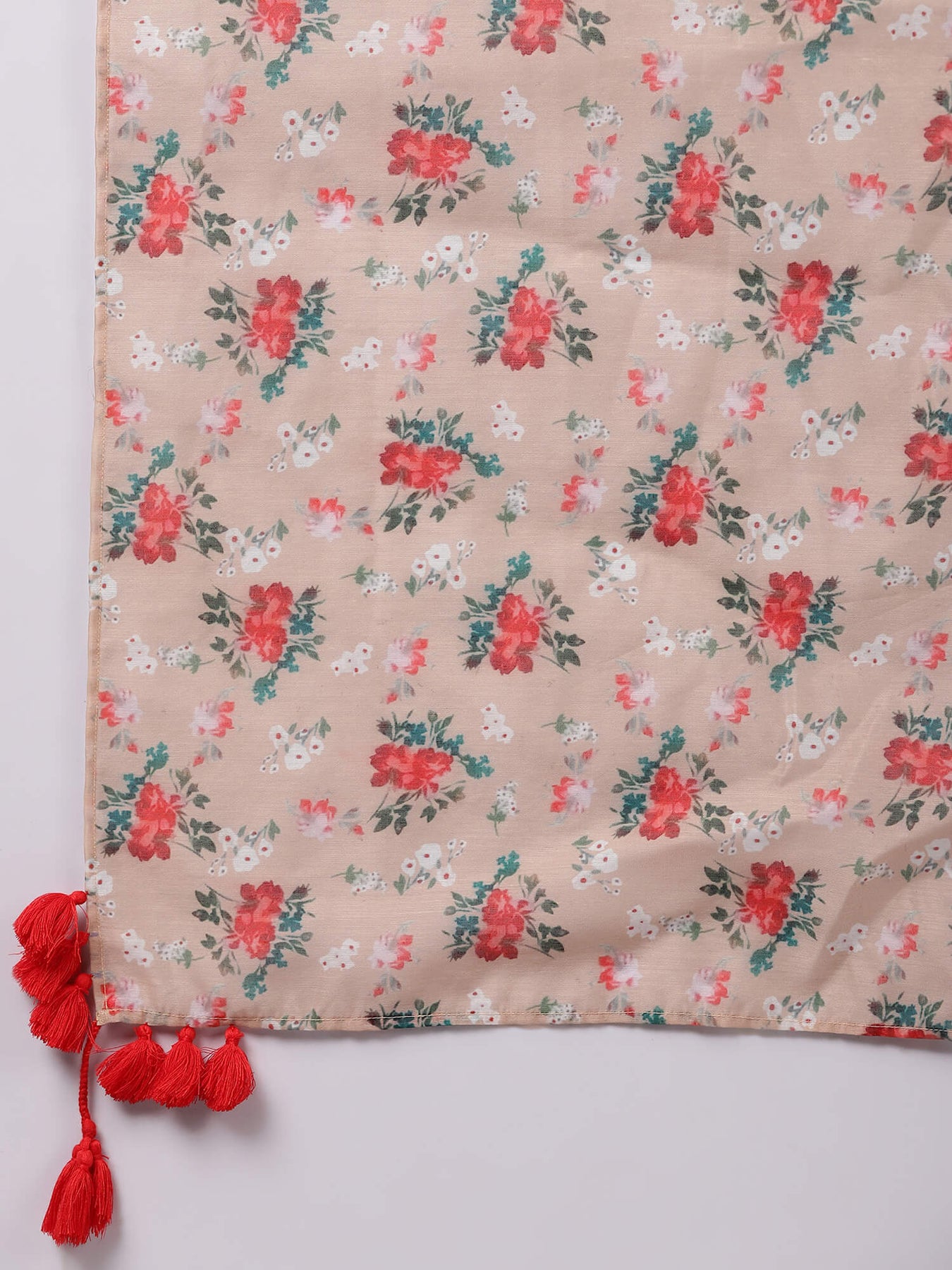 Beige Ditsy Print Chanderi Kurta Set with Dupatta